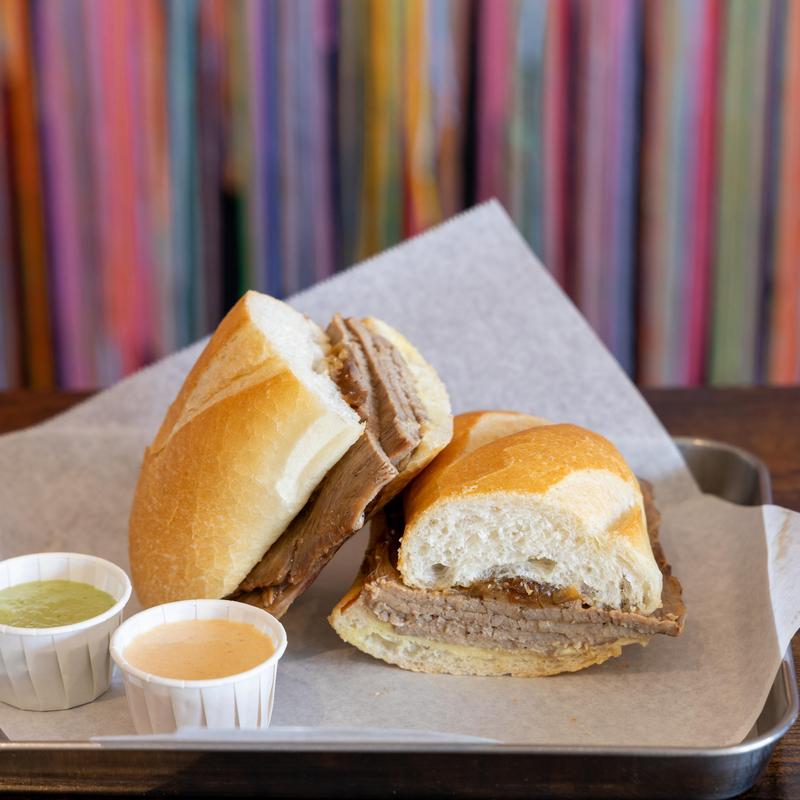 Roast beef served with its gravy made with a blend of spices and Peruvian chilis. It includes fresh white onion relish.